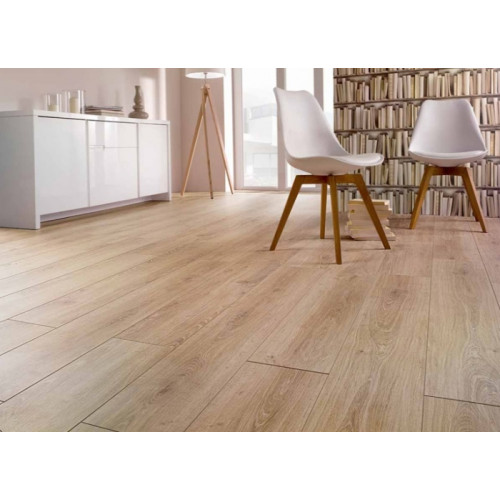 Модель "Дуб Вікторія" – вишуканий матовий ламінат темно-бежевого кольору. Має рельєфну поверхню та фаску з чотирьох сторін, завдяки чому максимально вдало імітує натуральну деревину. Стриманий дизайн та нейтральний колір роблять «Дуб Вікторія» універсальним варіантом, який підійде для будь-якої кімнати та будь-якого стилю інтер'єру. Ламінат не вимагає особливого догляду та може поєднуватися із системами підігріву.