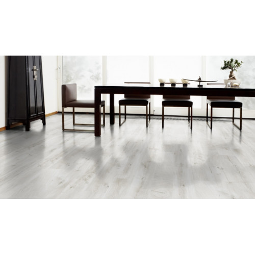Модель «Дуб FRESCO SNOW» - влагостойкий однополосный ламинат белого цвета. Ненавязчивая структура и умеренная сучковатости делают изделие лучшим вариантом для дополнения любых классических или современных стилей. Для обеспечения максимального сходства с натуральной древесиной изделие дополняется рельефностью и фаской по периметру доски. Может сочетаться с системой подогрева пола.