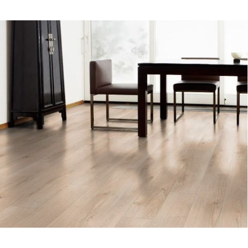 Модель «Дуб ATLANTA» - светло-бежевый влагостойкий ламинат со сдержанным классическим дизайном и выраженной четырехсторонним фаской. Благодаря своей ширине, рельефной поверхности и умеренной сучкуватости, покрытие удачно имитирует естественную дощатый пол.