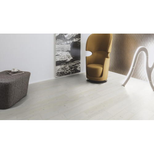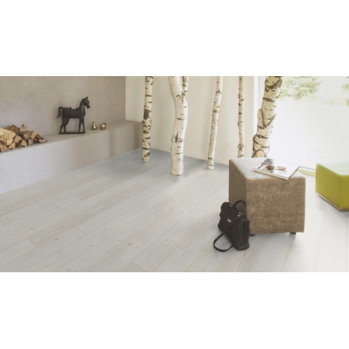 Модель «Ялина WHITEWASHED» - однополосный ламинат холодного белого цвета. С максимальной точностью передает естественную текстуру елки. Так же, как и деревянный массивный паркет, эта модель отличается удачно прорисованными годовыми кольцами, сучками. «Ель WHITEWASHED» имеет ненавязчивый классический вид. Она прекрасно сочетается с темной мебелью, деревянными и металлическими аксессуарами. Дополняет натуральный вид покрытия четырехстороннее фаска, содержащаяся со всех сторон ламинатной панели. В случае необходимости может сочетаться с системами подогрева пола.