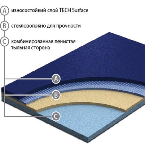 Верхній шар TECH Surface, виготовлений за запатентованою технологією, забезпечує довговічність та легкість технічного обслуговування.