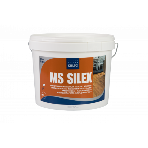 MS Silex - еластичний клей для приклеювання дерев'яних покриттів для підлоги. Застосовується також на об'єктах із системами теплої підлоги. ISO 17178 – твердо-еластичний. Сертифікат М1: наднизьке виділення шкідливих летких речовин із матеріалу в процесі експлуатації.