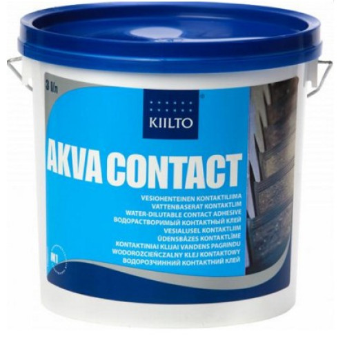 Kiilto Akva Contact (Кіїлто Аква Контакт) водорозчинний контактний клей, для приклеювання підлогових та стінових облицювальних покриттів, пробки, ламінату, картону шкіри тканини.