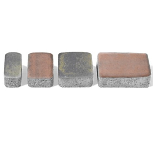 Тротуарна плитка «Старе місто» має чотири розміри в наборі, тому можна легко підібрати каміння для будь-якої ширини доріжки з мінімальною підрізкою.